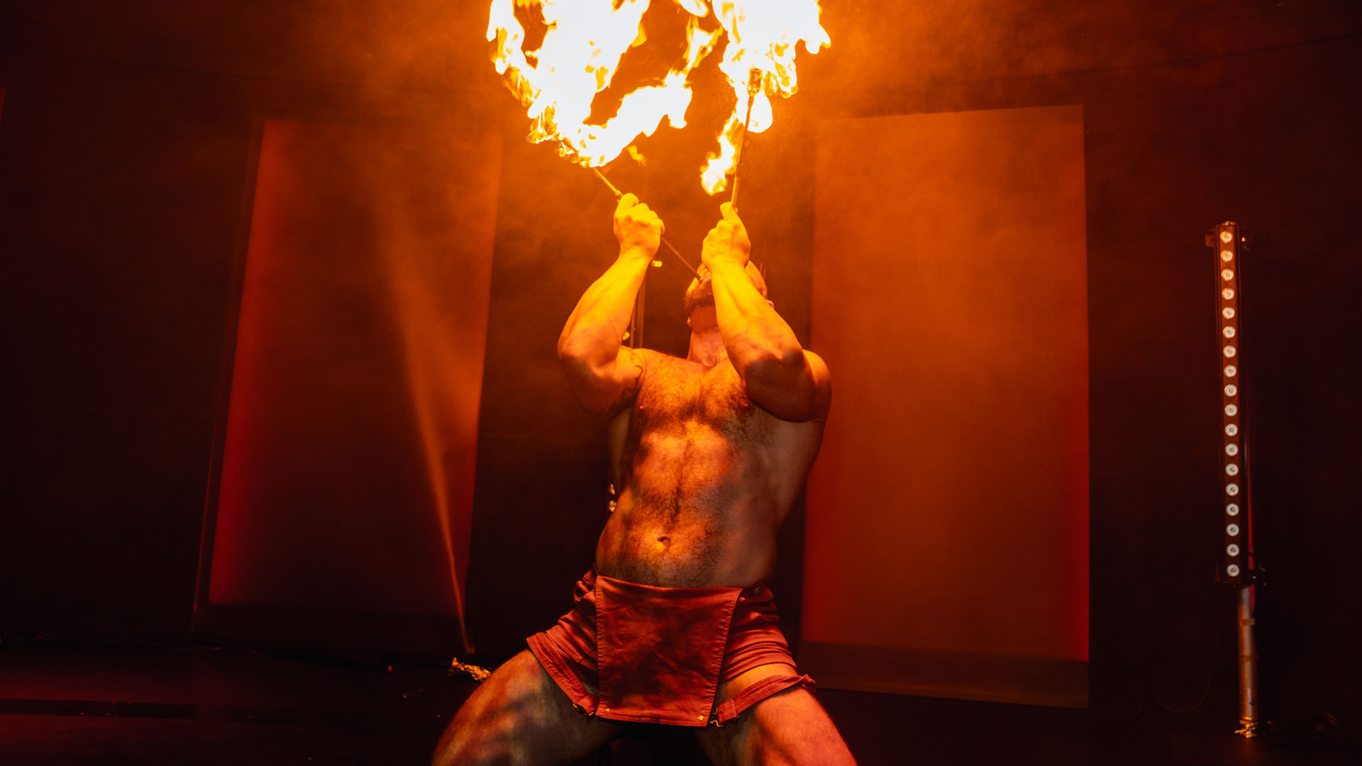 Temptation runs through the show as a steady undercurrent. The host, Mercury, understands how to introduce that tension early and hold it. Their presence sets the tone before the physical escalation begins. When they sing, it comes as a genuine surprise. The voice is strong and grounded, slowing the room down at key moments and deepening anticipation rather than breaking it. The humour lands because it never punches down, and the audience is guided rather than pushed.